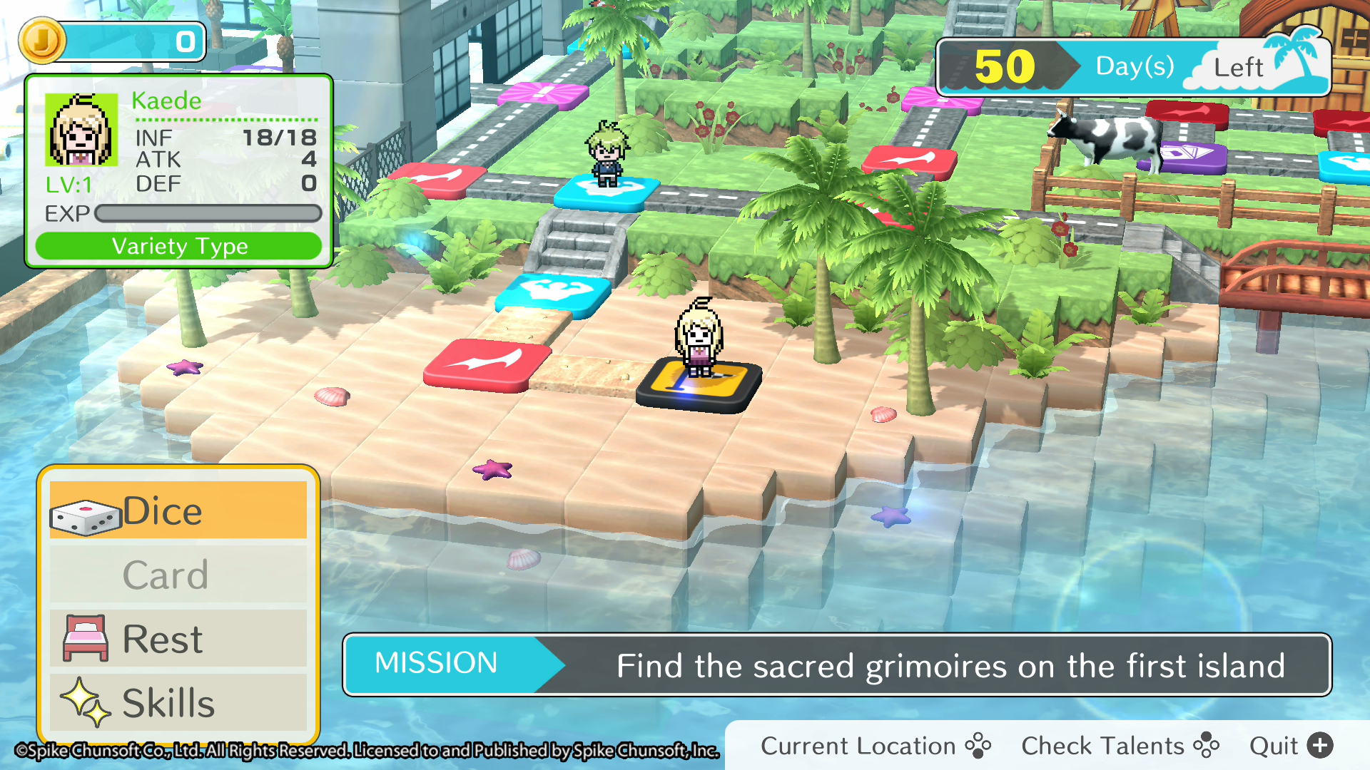 La parte principale del gioco in cui i giocatori svilupperanno il loro personaggio in 50 giorni (50 turni) di campo estivo sull’isola di Jabberwock. Tira un dado per determinare di quanti spazi muoverti. Verrà attivato un evento a seconda della casella in cui si trova il personaggio. Ogni personaggio ha varie statistiche, incluso il livello. Le statistiche dei personaggi migliorano salendo di livello, fermandosi su una casella Crescita o interagendo con altri personaggi nelle caselle Evento. I boss piazzati da Monokuma e le battaglie tra mostri innescate da Battle Squares ostacoleranno il percorso del giocatore lungo la strada. I Talent Squares conferiscono Frammenti di Talento, che conferiscono ai personaggi nuove abilità. I giocatori dovranno anche acquisire armi e armature nei negozi e negli scrigni del tesoro, nonché utilizzare carte con effetti utili a proprio vantaggio.