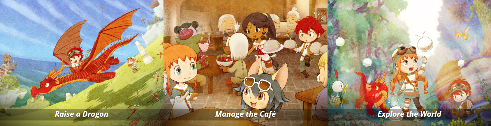 In Little Dragons Café esplori un mondo completamente nuovo realizzato da Yasuhiro Wada, il creatore della serie Bokujô Monogatari (pubblicata fuori dal Giappone con il nome di Harvest Moon e Story of Seasons).